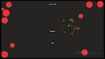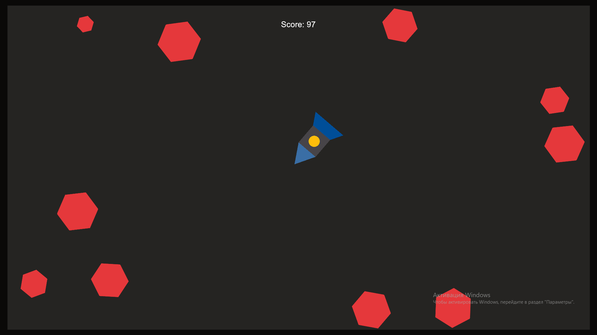 The player controls a small spaceship flying inside a confined area while avoiding moving obstacles. The goal is to survive as long as possible and achieve a high score